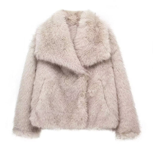 Women’s Cropped Faux Fur Coat with Oversized Collar