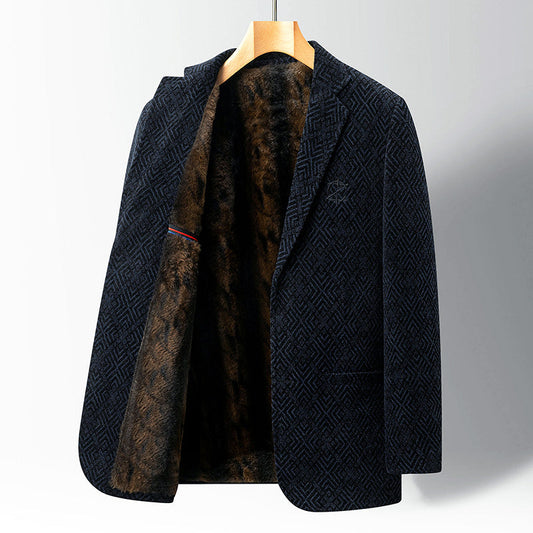 Men’s Winter Coat with Fur Lining and Geometric Pattern