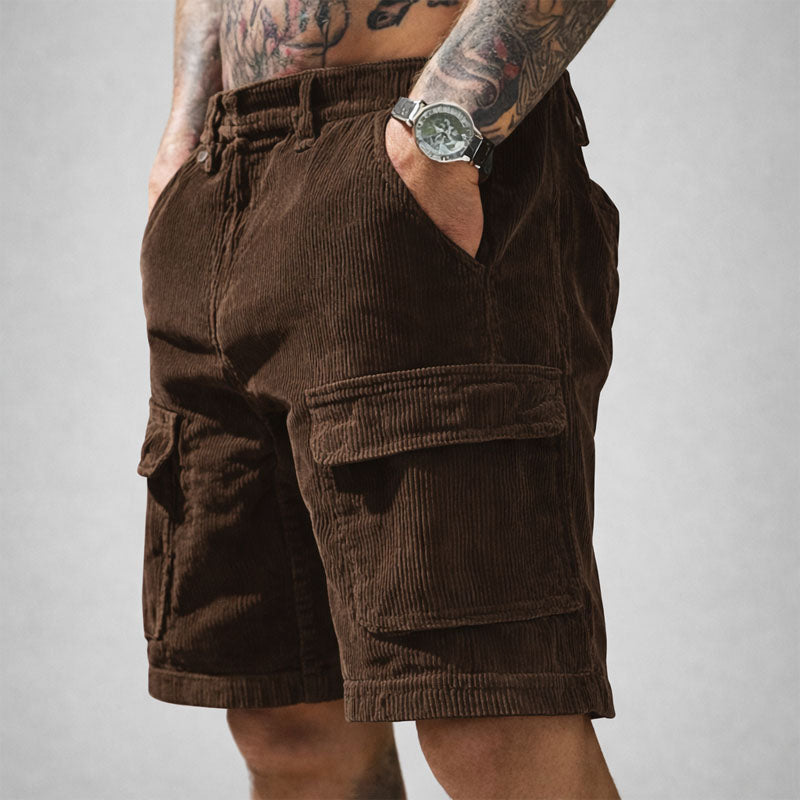 These corduroy cargo shorts feature a textured surface and a relaxed cut for a laid-back everyday look. Multiple utility-style pockets add practical detail and a casual, functional feel.